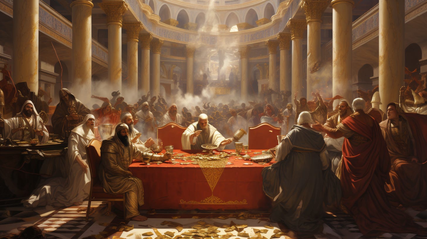 At The Thieves’ Banquet, the devil amasses all the most evil people around the world and they compete to see who has done the greatest harm to humans and freedom. The competitors: third world dictators, monarchs of empire, religious leaders, and the banking cartels.